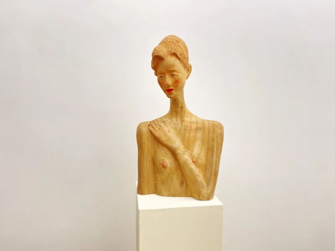 徐长远塑造出的女性形象是柔美而灵性饱满的,他赐予她们木制纹理的肌肤,木头在他眼中不是死木,是一棵棵活树,在他的手中,木的属性无限逼近于人的属性。与其说他为木头注入了灵魂,不如说他将古老的灵魂从木头中解放出来。