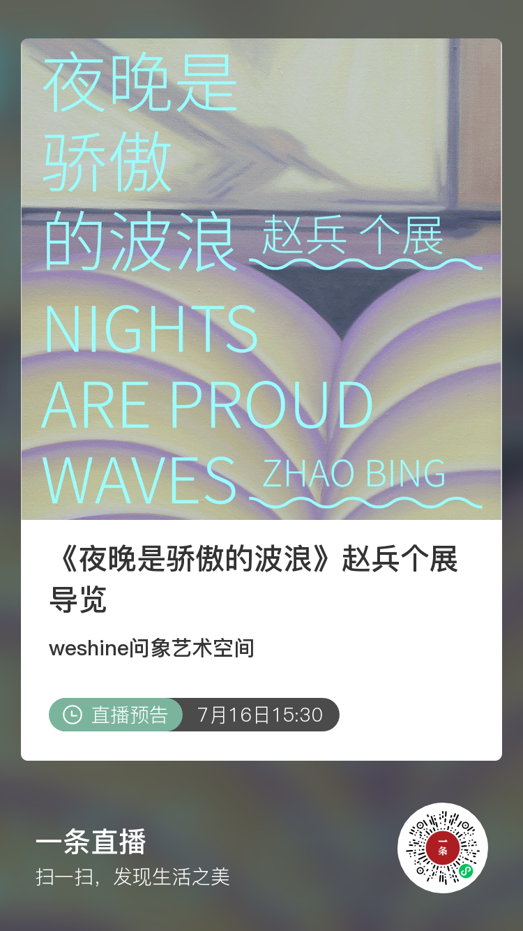 赵兵此次创作不乏“所见”之景。林荫,繁花,光晕,蔚蓝海岸,拱形空间……但赵兵并未专注于对记忆的简单描绘,而是转向了氛围与情感的真实表达。画面中意象的冲击超越了形状的呈现。柔软细腻的颜料,光与影的交错,虚与实的结合将所见瞬间的氛围注入画布。在《奇异的湛蓝时刻》《空间是时间的见证者》中,柔软虚幻的拱形背景与远处抽象明晰的景色交替,情绪在对比的缝隙中如水般温润流淌。巴尼特纽曼的亮镉红色zip诞生于1964年,而赵兵的光带则在此呈现。一幅幅画面犹如蒙雾的电影镜头,简化周遭繁复,将目光聚焦于一件事物,但又满溢着朦胧质感,似幻想,似梦境,无限接近却缥缈无垠。“所见”的物体已不再是赵兵笔下的主体,“真实”在赵兵的画中不再仅仅是“所见”之物的直白描绘,而是对“所见”瞬间记忆的表达与意象氛围的营造。至此,观者对于画面的注视转化为了身临其境对于“当时所见”的氛围的再次体会与凝视。