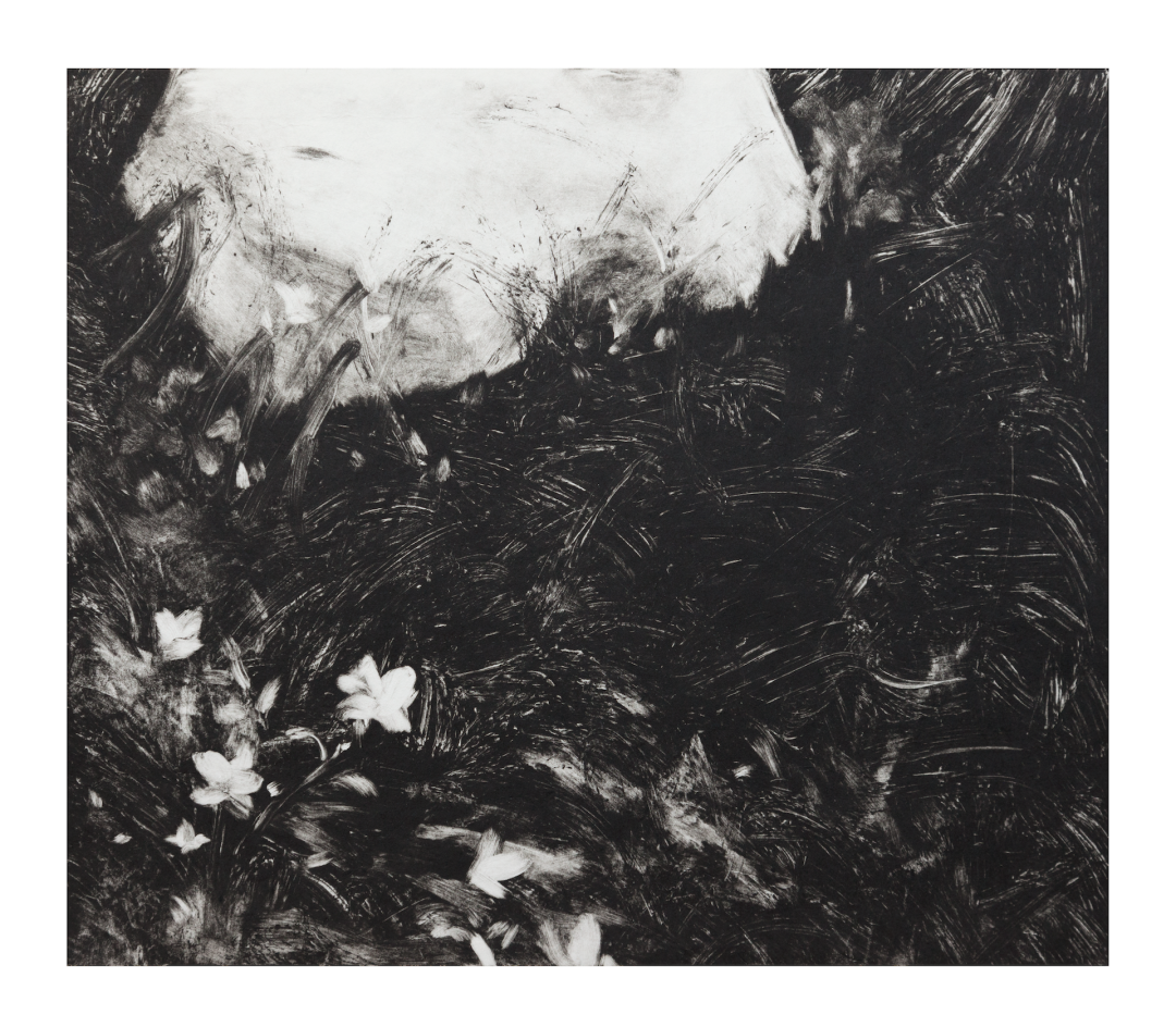 艺术家对观看中一些感受的瞬间性把握,造就了图像传达出的感觉,《花初开》系列中,画面显得急促、苍白、纷乱、甚至有点神经质,肆意的笔触神经般密集,形象有些模糊,有些缭乱,却将主体物像与背景精简至轮廓的恰到好处,简洁有力,使得画面充满张力,为的是与图像背后的庞大的内容相逢。画面中的那种不动声色的风格,看似漫不经心却正是隐含着我们本身的岁月和生活,你永远不能由艺术获得艺术,艺术必须源自现实。