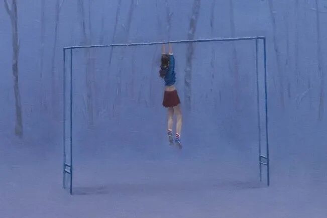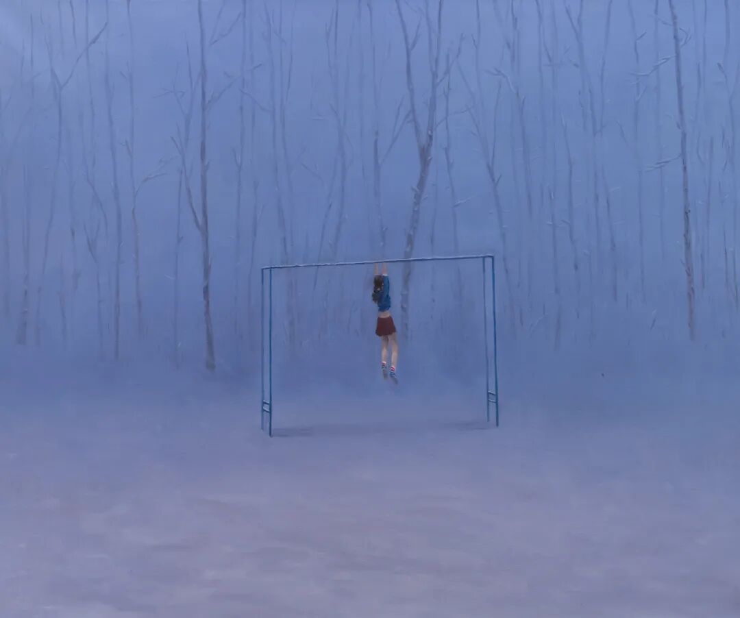 在赵轶的作品“最开始的时光”系列里,“人”处于虚无状态下,充满自我质疑,不断的想从外部的实在中寻求和摆脱既有的生活方式。内在的焦虑和不确定性却又使其在现实中暂时难以达到内心的平衡。个体潜藏的无意识状态透漏出本体的的不适,这种焦灼感的诞生和无奈被赵轶捕捉和隐晦的表达。
