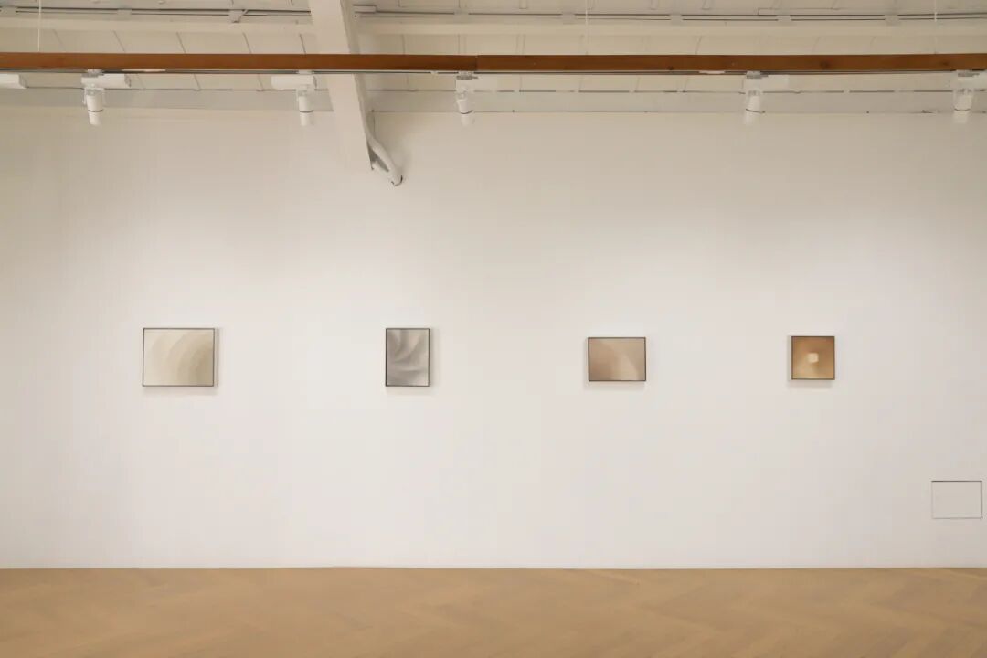在马月明个展《显迹》的现场,我们能够做到的似乎只是注视,我们无从寻找到她的意图,她的思路是心尖上细小的耳朵放出的嘟囔,我们在那创世初的神话之定格一般的一幅幅景象之间徘徊。马月明呈现的世界没有明确的主体物,甚至是解开发绳一般轻轻取消了一切主次,也常常没有量度的单位可以给人提供形容的入口。我们从观看中可以了解到什么?《波》只表露他们的路径而隐没初端;《点》有限或者无限的相对存在於薛定谔的箱子里;《丘》完美地模拟了多个气流的运动中的一次逢遇;《建筑4》以平面的呈递构实了立体的周期性波形;《红》交界的犹如摩挲的笔触使我不自觉地仰头,在那个不会出现的顶端我的视线会停止上攀。