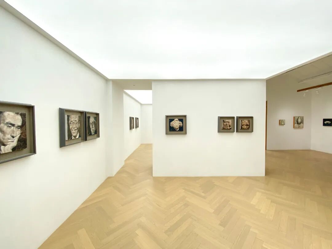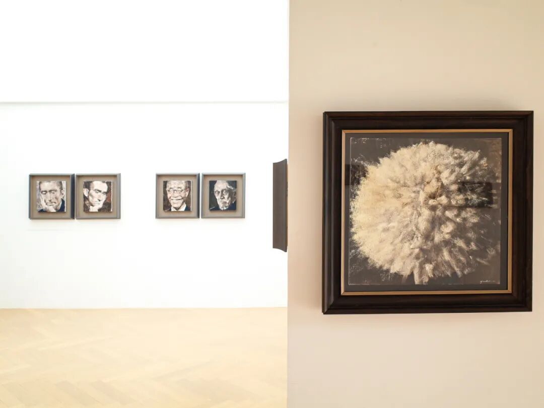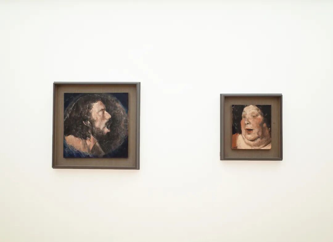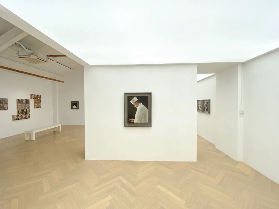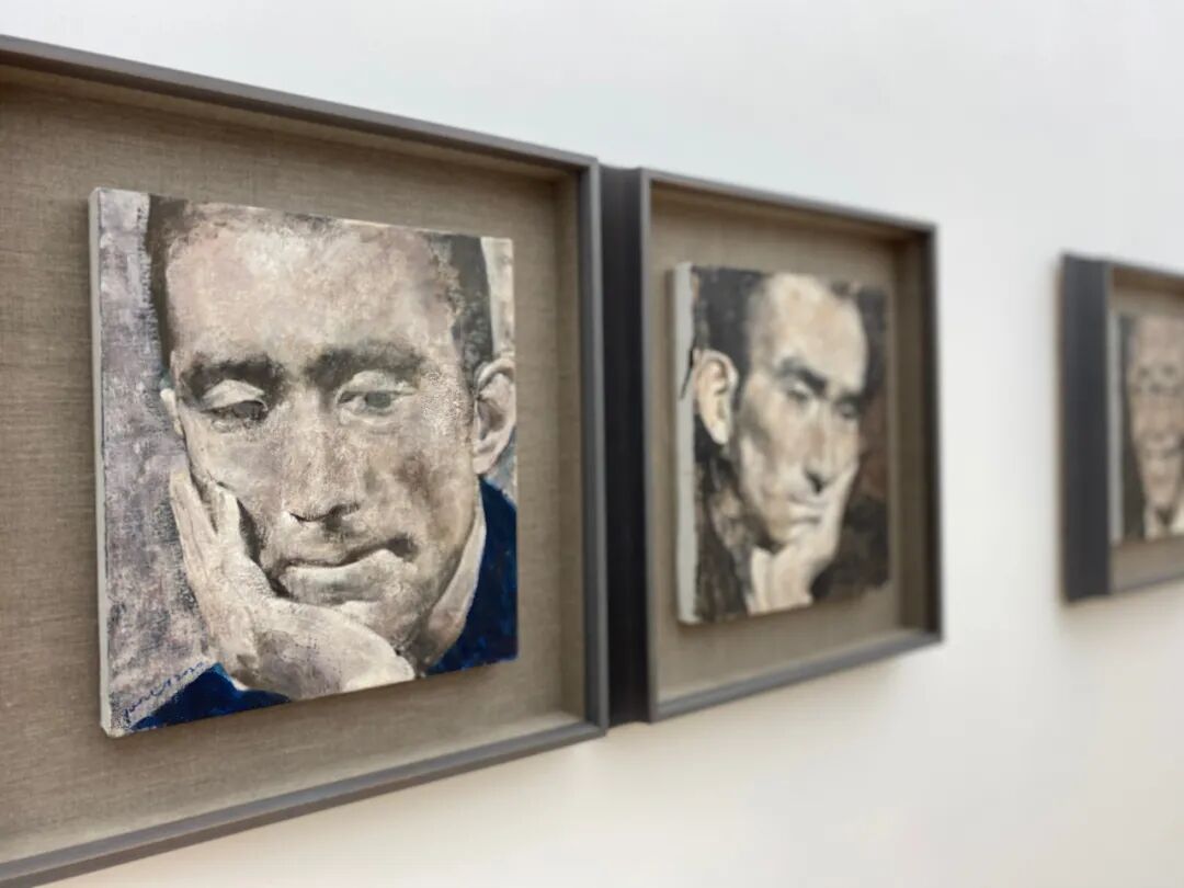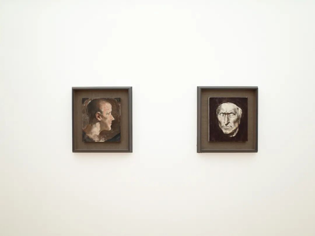 以下是对具体画作的粗解。《相的肖像17、18、19》是作家三岛由纪夫的肖像三联,借助于这位作家的史料照片,《相的肖像11、12、13》是哲学家黑格尔的老中青三阶段肖像,分别来源于照片与版画。《相的肖像2、3》分别是对卡拉瓦乔和达芬奇画中女子肖像的脸部截取下来在绘画的,一个是在粗粝的表面上,一个是尽力模仿达芬奇的绘画情绪。《相的肖像14、15》是将弗朗切斯卡的《基督降生》中弹琴的演奏者的面部截取下来的再绘画。《相的肖像1》是大家梁漱溟的肖像,他的脸天然带有一种愤怒,《相的肖像8》是一个普通的哭泣的老妇,这两张绘画其中既有历史名人,也有历史中的无名者,愤怒的情感和悲伤哀痛的情感又可以通过情绪并置在一起。《相的肖像23、25、26》是斯坦因与王圆箓的肖像,当我再次观看王圆箓的照片的时候,发现他的面孔的情绪很微妙,在太阳底下又有点喜悦又有点苦涩,相比《道士塔》中一味把他当成罪人看来,我更觉得他是大时代浪潮下的小人物形象,我就将这两张情绪分别绘画和斯坦因的肖像并置在一起。也将这组作品称为大探险家与小人物的肖像。这些是部分以作者为视角的作品解读。由于作品小幅分散,作为观看者,可以有重新的组合和审视视角,能够产生新的解读。