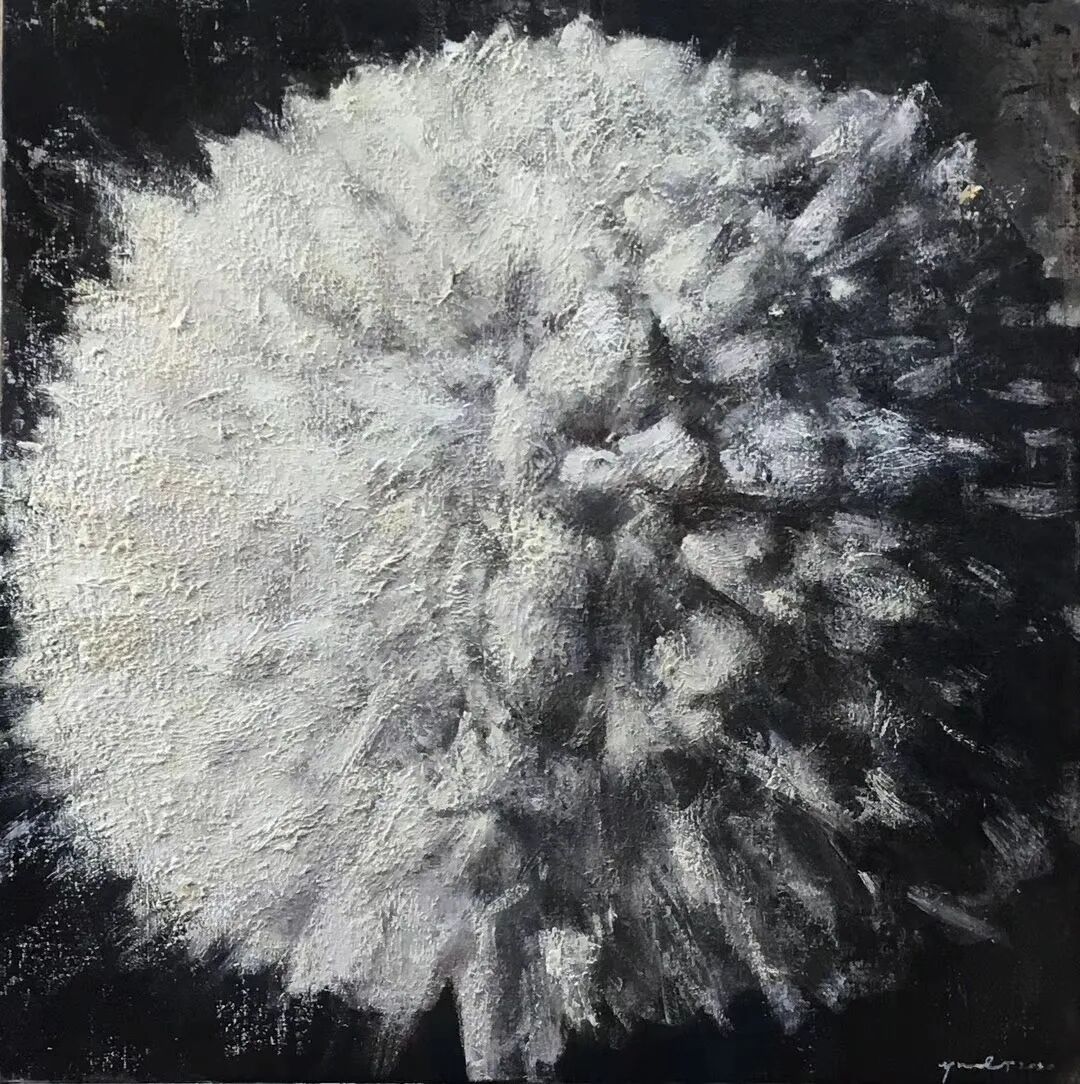 《 白色物-乒乓球菊的肖像》布面油画 60x60cm 2020