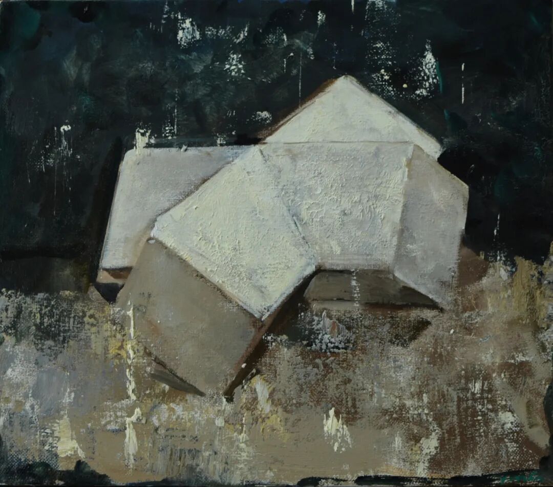 《 白色物-倒置的十字穿插体》 布面油画 35x40cm 2020