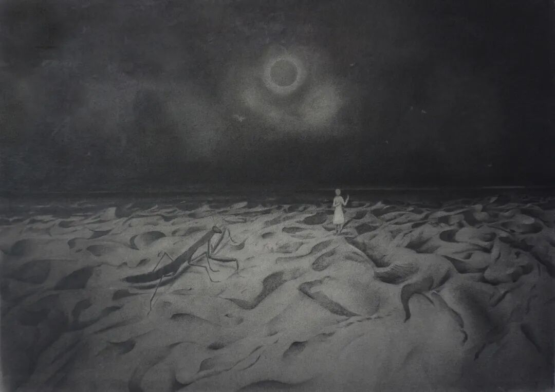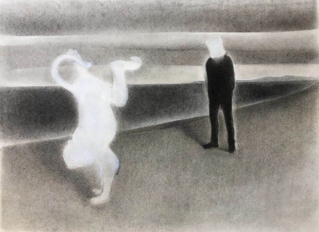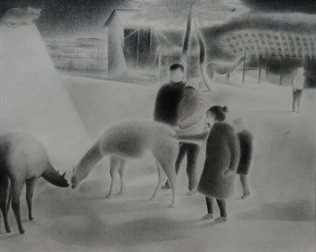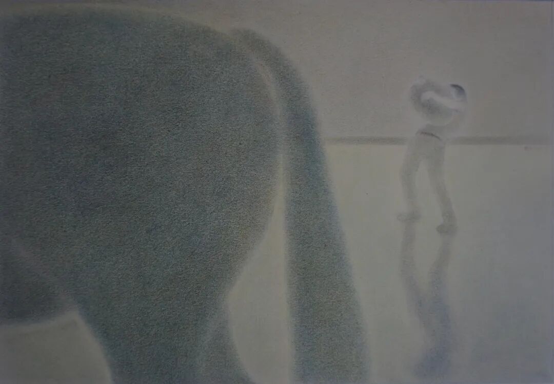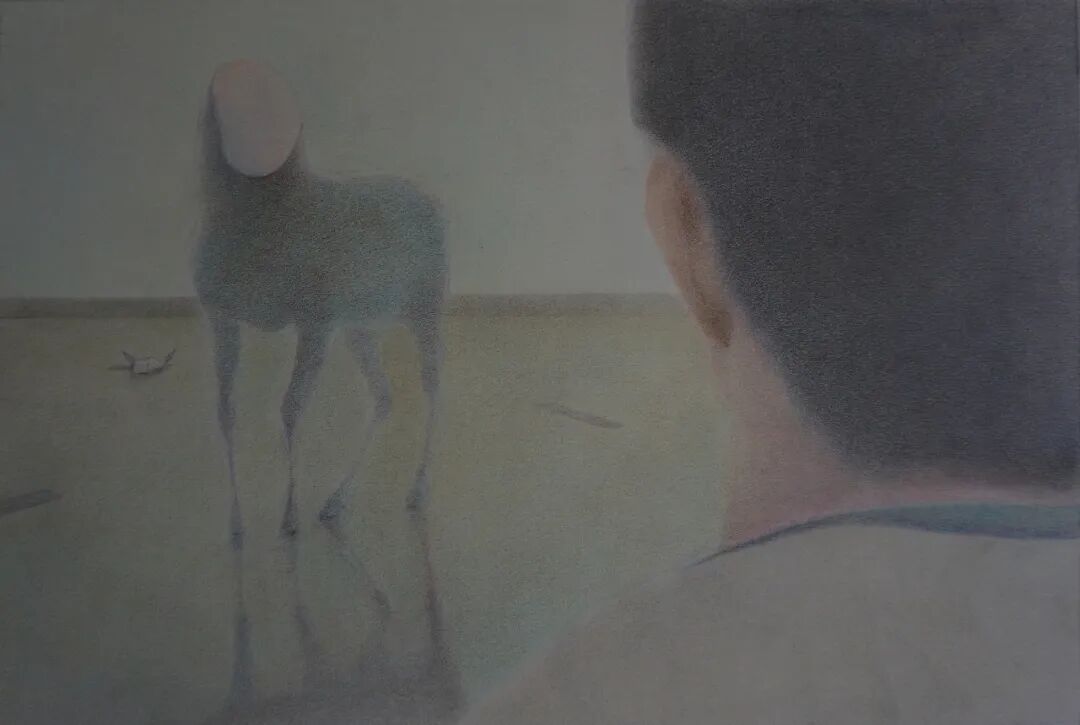 上头的描述,可称全是一个个人的实体经验在饲养的联想甚或臆测,我并没有顾及是否须要先和作者打交道,而是扯拉缰绳、夺了他的东西,从他的姓氏名头上飞速过去了。王明之的画确乎是容易好取去的,那么细腻、那么柔和,轻耎如霧雲、腾虚若飛鳥,正是这般。让人不禁疑心:铅笔、砂纸、彩铅、色粉,这几样不可再简单的材料,是否是因为他而预備了他展露的那从容的世界所有的质素。
