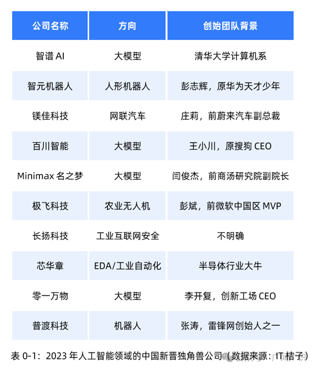 2023 年,AIGC 持续火热,不仅各大巨头纷纷发布大模型产品,人工智能领域的新秀也如雨后春笋般涌出。2023 年企业人工智能领域的新晋独角兽企业有 10 家,其中 AIGC 及大模型相关的企业就有 4 家,分别是智谱 AI、百川智能、零一万物、Minimax 名之梦。
