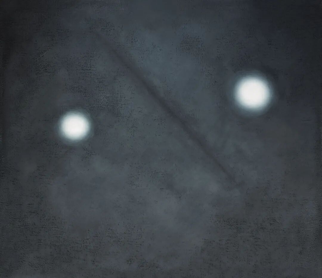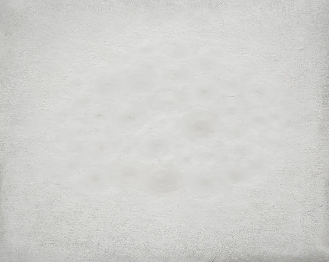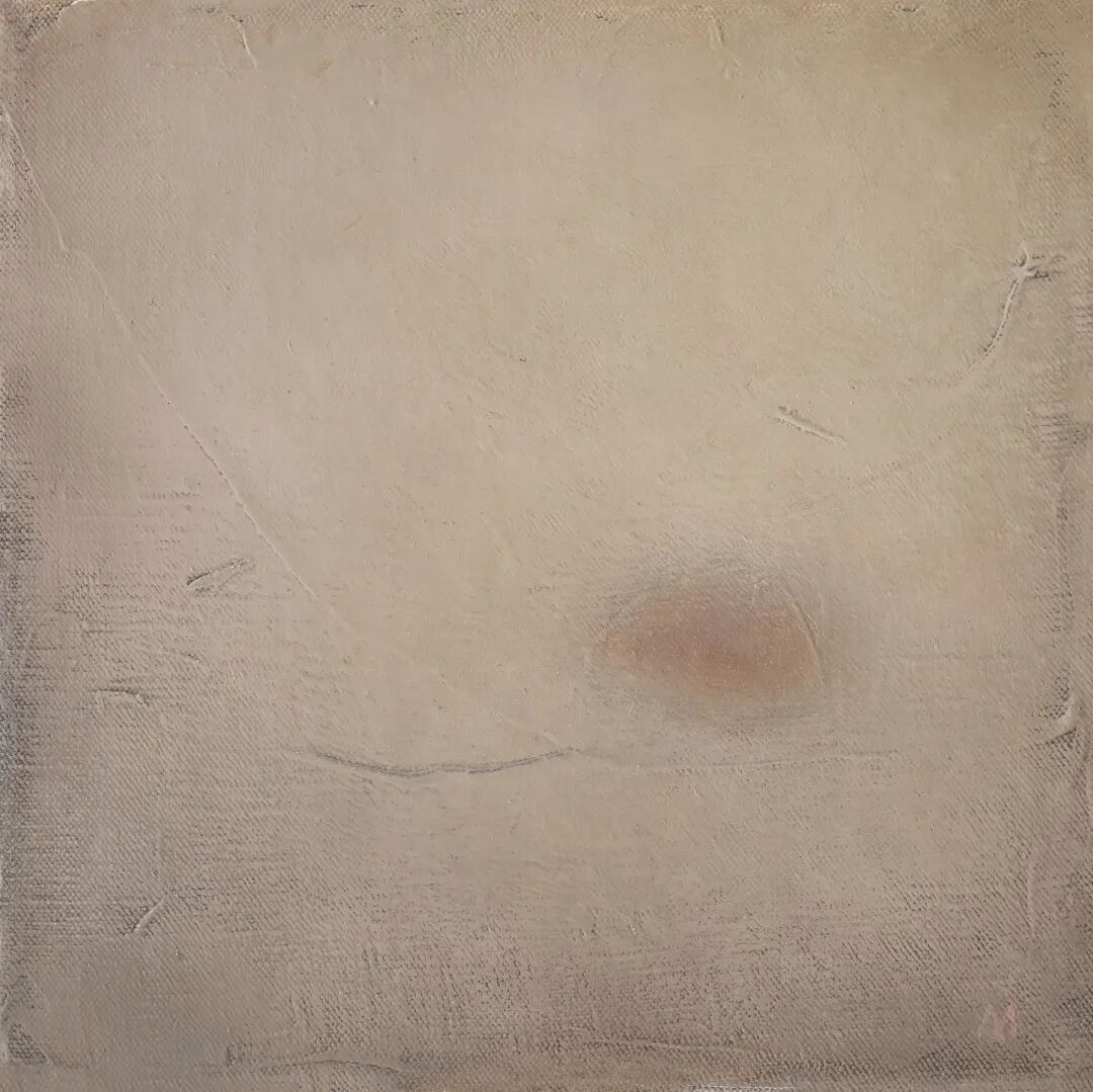 首先在一个展示的空间而言,我希望我的作品出现在一个很大的白墙上,就用我现在画的这副而言,我希望观众从白色的域再到黄色的块最后再到那个朦胧的点,这次的作品有点像之前的《点》的放大版,我很期待不同的人看到我的画,每个人都会有不同的解释,这会非常有趣。