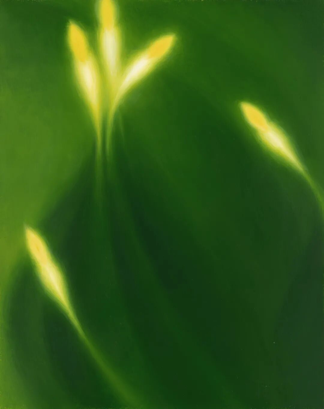 马月明是一位爱养植物的艺术家,她常常在生活中捕捉它们发芽或开花的样子。对她来说,绘画是一种察觉未知的探索,不论感觉的偶然、暗示的隐晦、秩序的捕捉,都在隐秘的勾勒画面的“非线性”叙事。