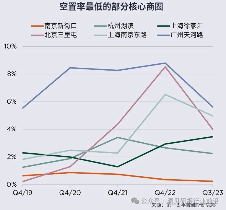 在2019年末,62%的核心商圈空置率在5.0%以下,但截至2023年第三季度,这一比例降至仅有41%。但另一方面,核心商圈的后街、或一些独有氛围的二级地段,却正成为不少品牌青睐的新兴区域。