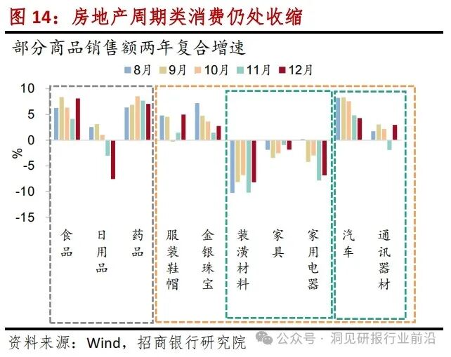 去年12月经济数据同比增速有所上行,主要由于基数走低,实际动能仍在筑底。规模以上工业增加值当月同比6.8%,两年复合4.0%;社会消费品零售总额当月同比7.4%,两年复合2.7%。