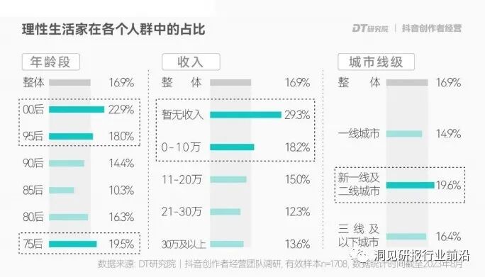 “理性生活家”是短视频平台第二大的消费群体,占比也只有16.9%。他们通常会购买自己熟悉的产品或品牌但下单前也会多番斟酌。