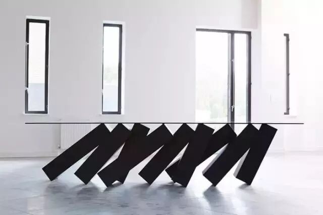 伦敦设计工作室 Duffy London 从电影《2001:太空漫游》中的黑石板获得灵感,设计出了名为「megalith」的一系列「反重力」桌。虽然看起来不太牢固,但黑石板相处之边连接成了一个不可憾动的整体,相当稳固。