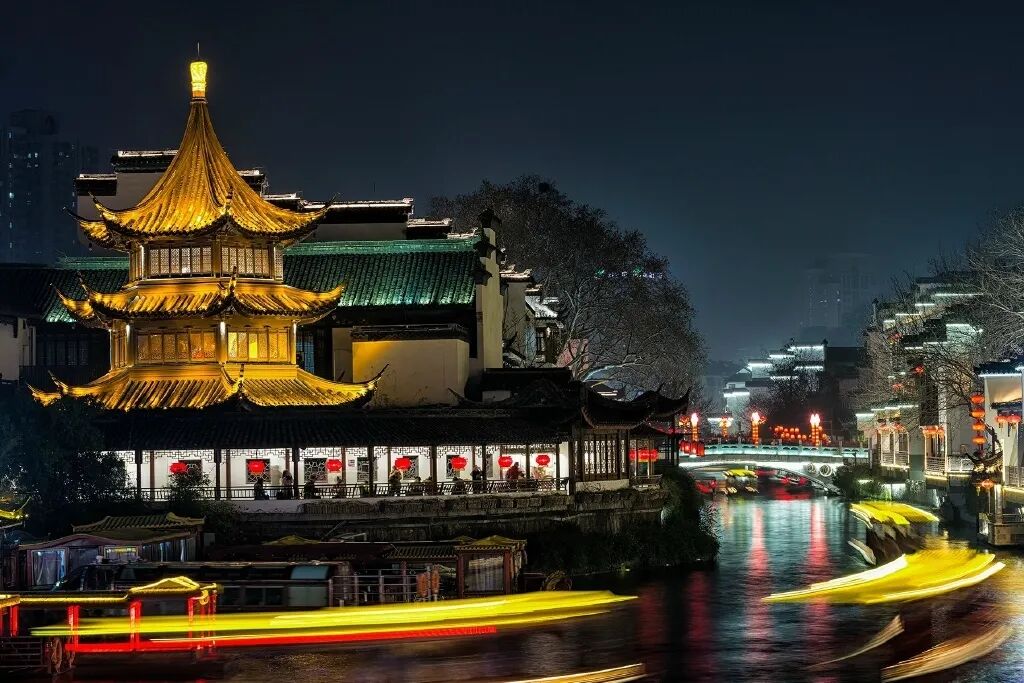 南京基建拔地而起,一到夜晚,便大放异彩,