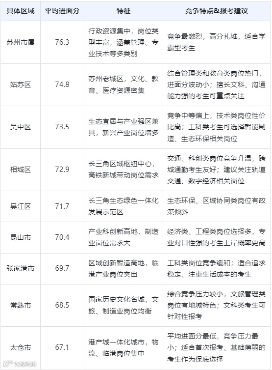 对于后续报考者,建议把握三大原则:一是“梯度报考”,根据自身实力选择核心城区、近郊区或远郊区,避免盲目冲刺热门区域;二是“专业匹配优先”,尽量选择与自身专业高度契合的岗位,降低竞争难度;三是“关注政策红利”,相城的枢纽经济、吴江的长三角一体化等政策倾斜区域,未来岗位需求将持续增长,可提前布局。