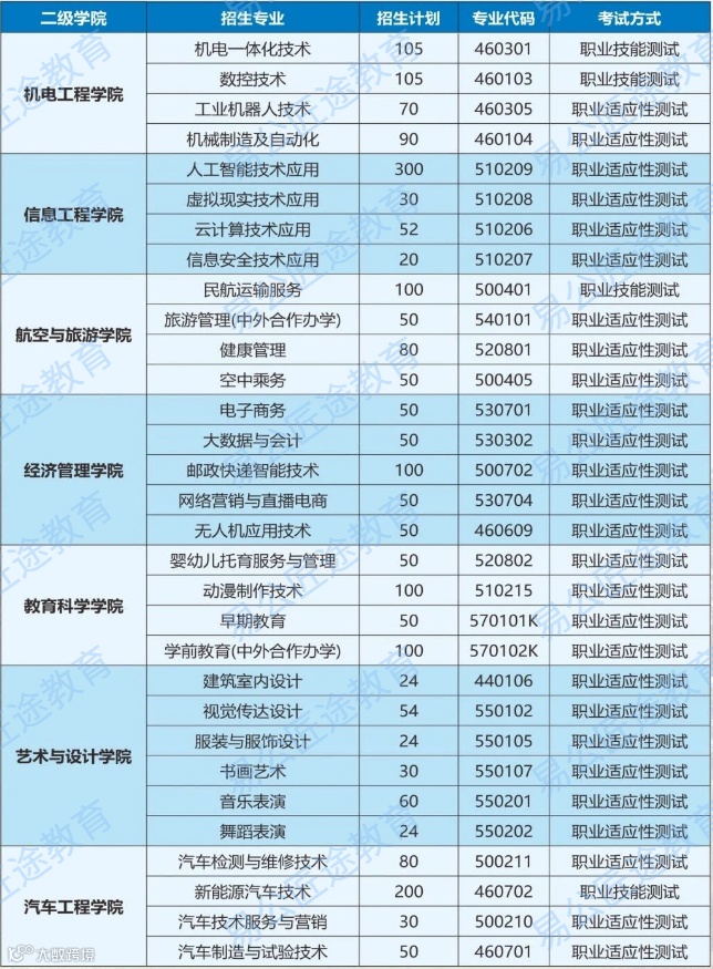 25年单招招生计划如下表所示: