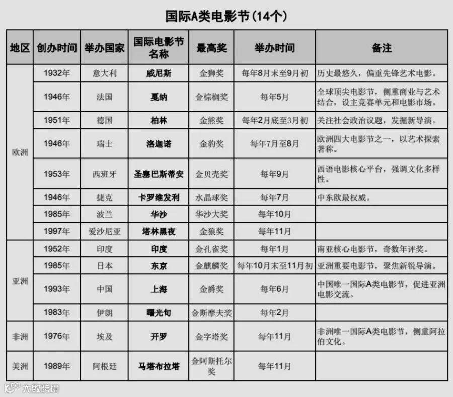 A类:竞赛型非专门类电影节,即有竞赛单元,且无特定主题的电影节;