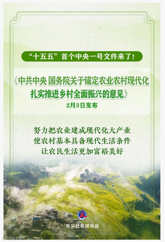 《中共中央 国务院关于锚定农业农村现代化 扎实推进乡村全面振兴的意见》提出