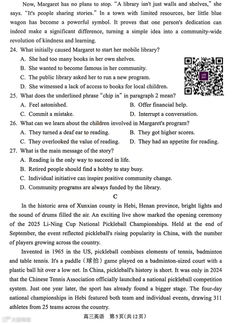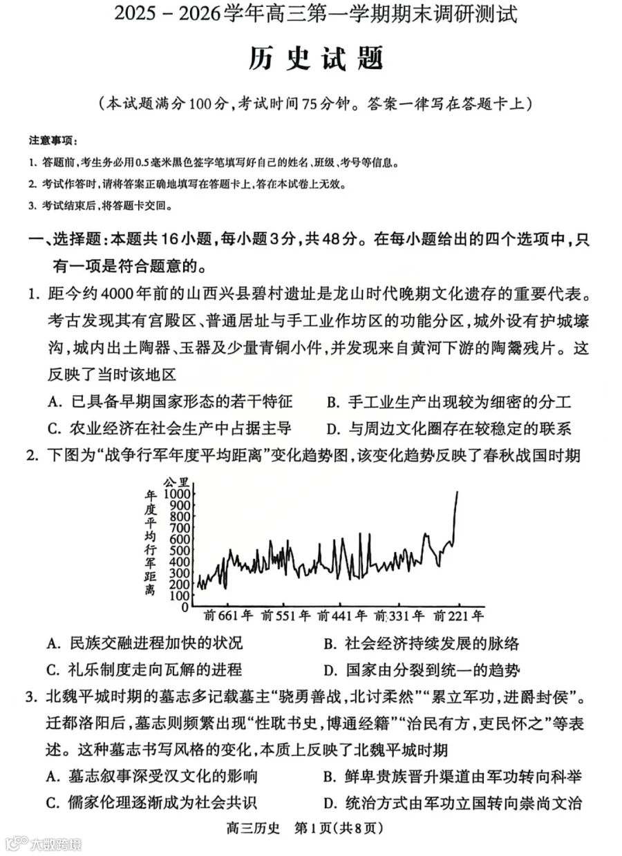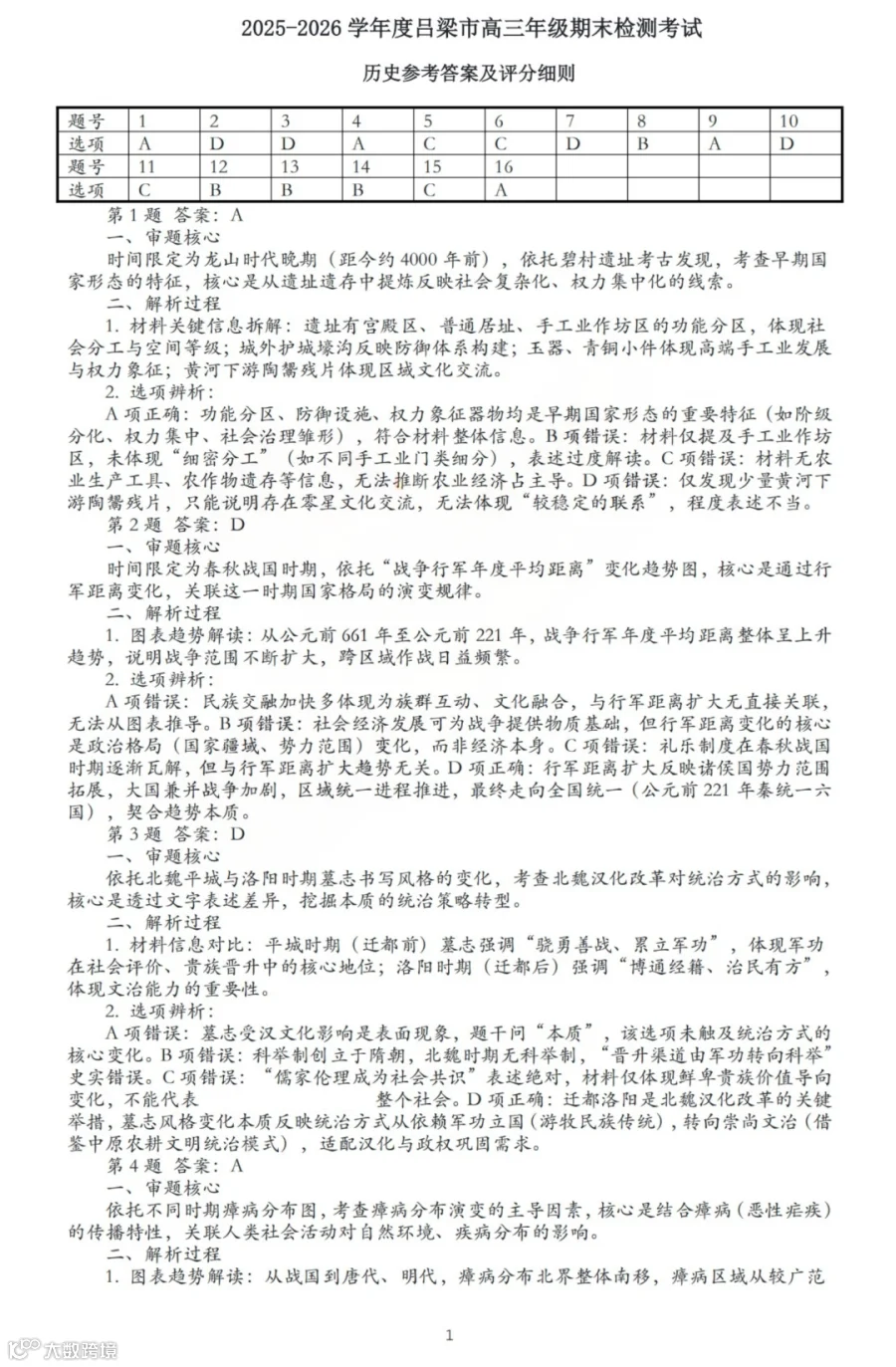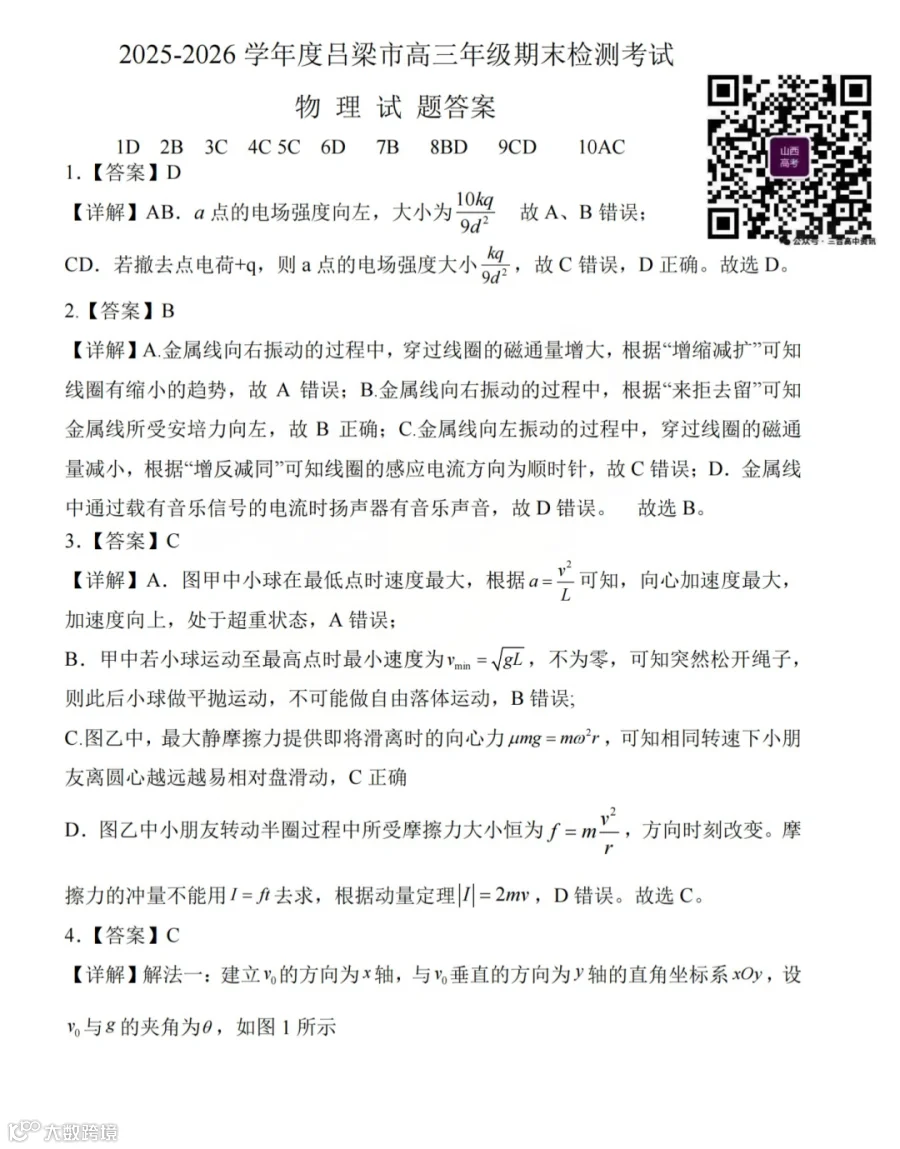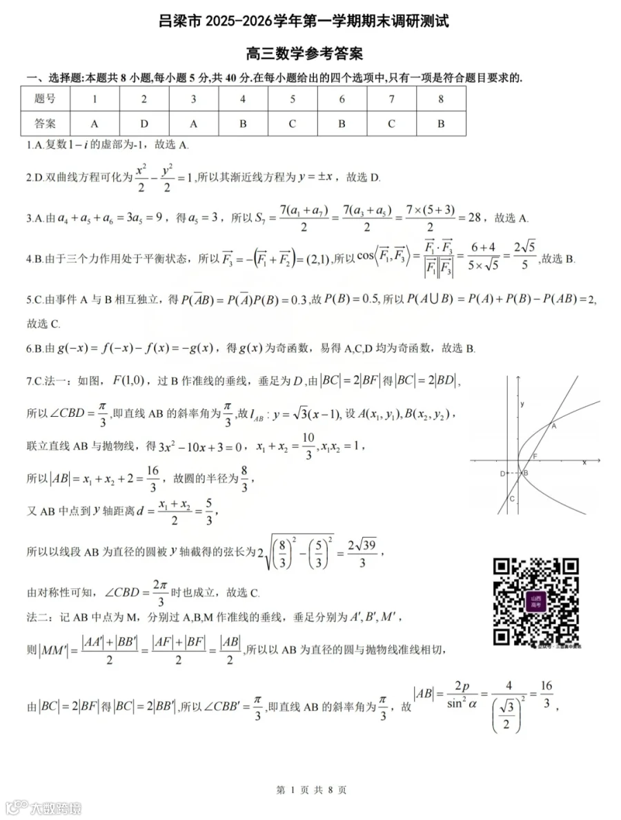 【吕梁一模】吕梁25-26学年高三上学期期末调研测试及答案全汇总 三晋高中资讯