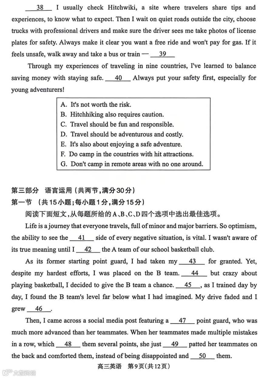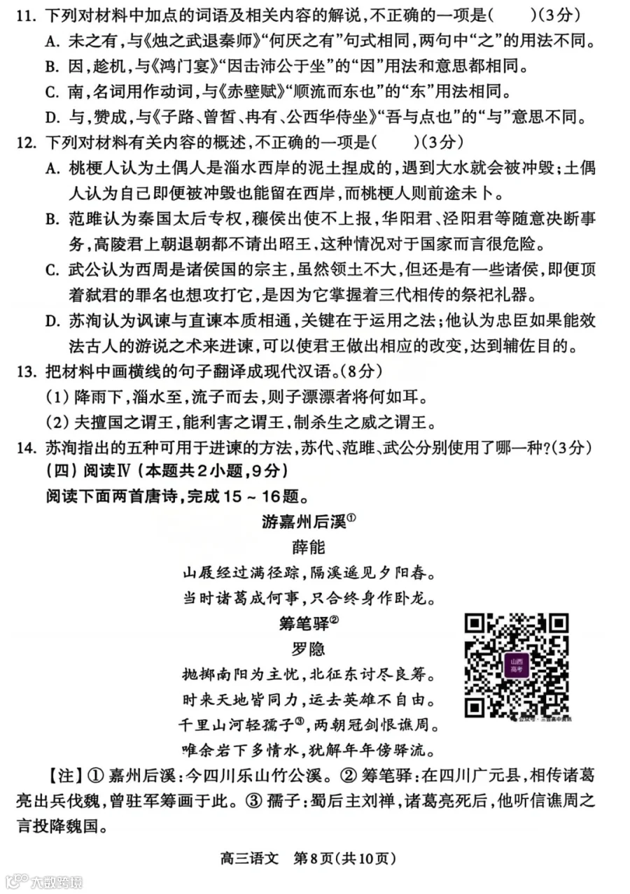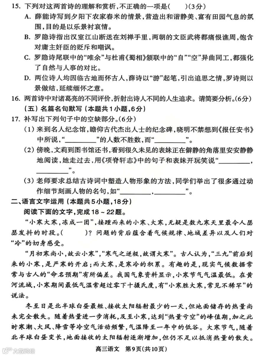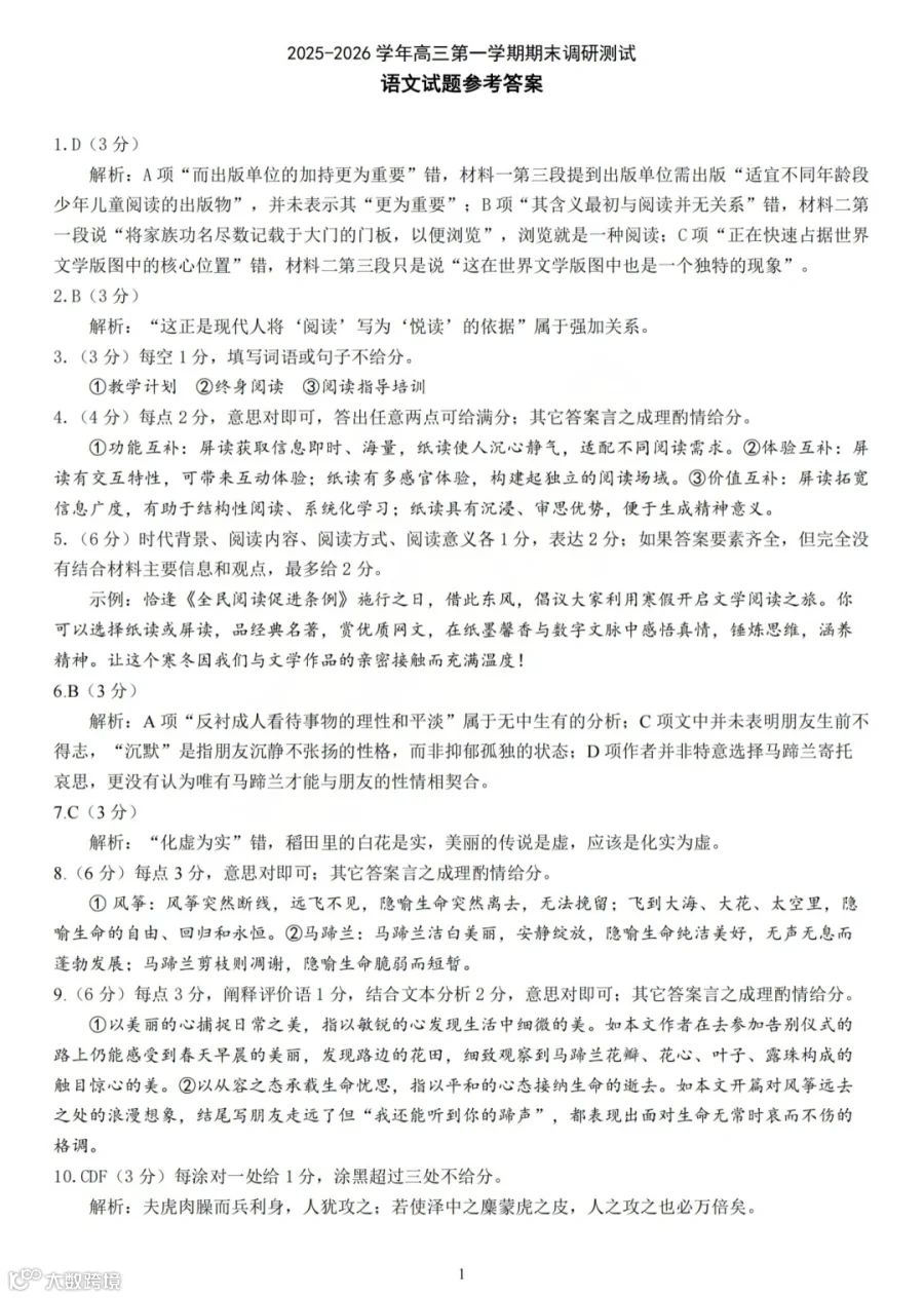 【九师联盟】2026届高三1月质量检测数学、语文试题及答案已更新