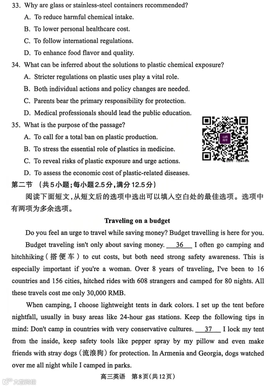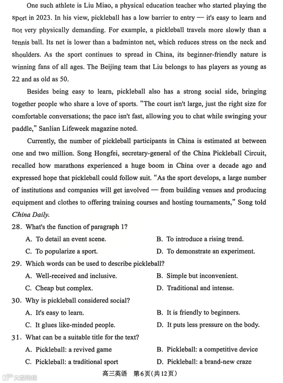 回复高考一模、高考二模高考三模省适应考,获取对应试题资料
