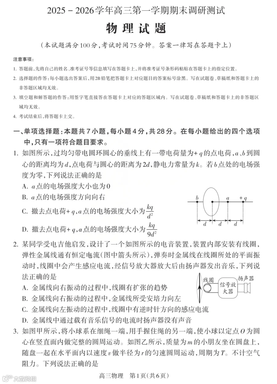 山大附中25-26学年高三上学期1月考(总第八次)试题及答案全