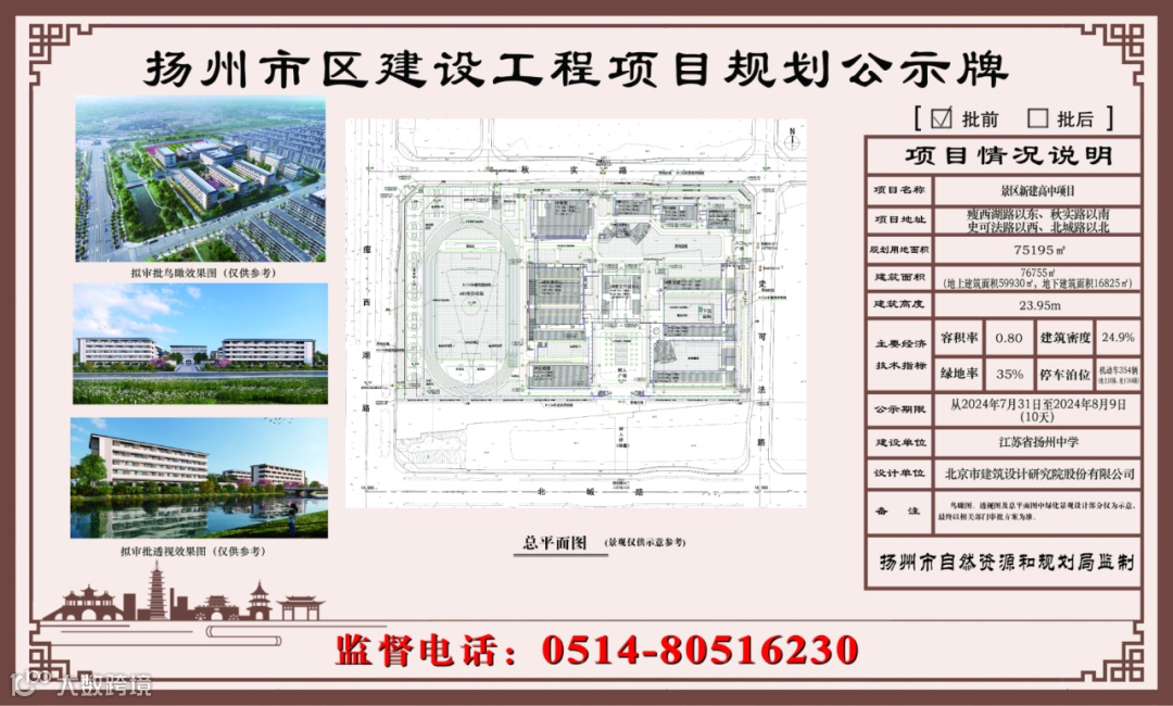 2024年7月31日,扬州市自然规划局公示了景区新建高中的项目情况。