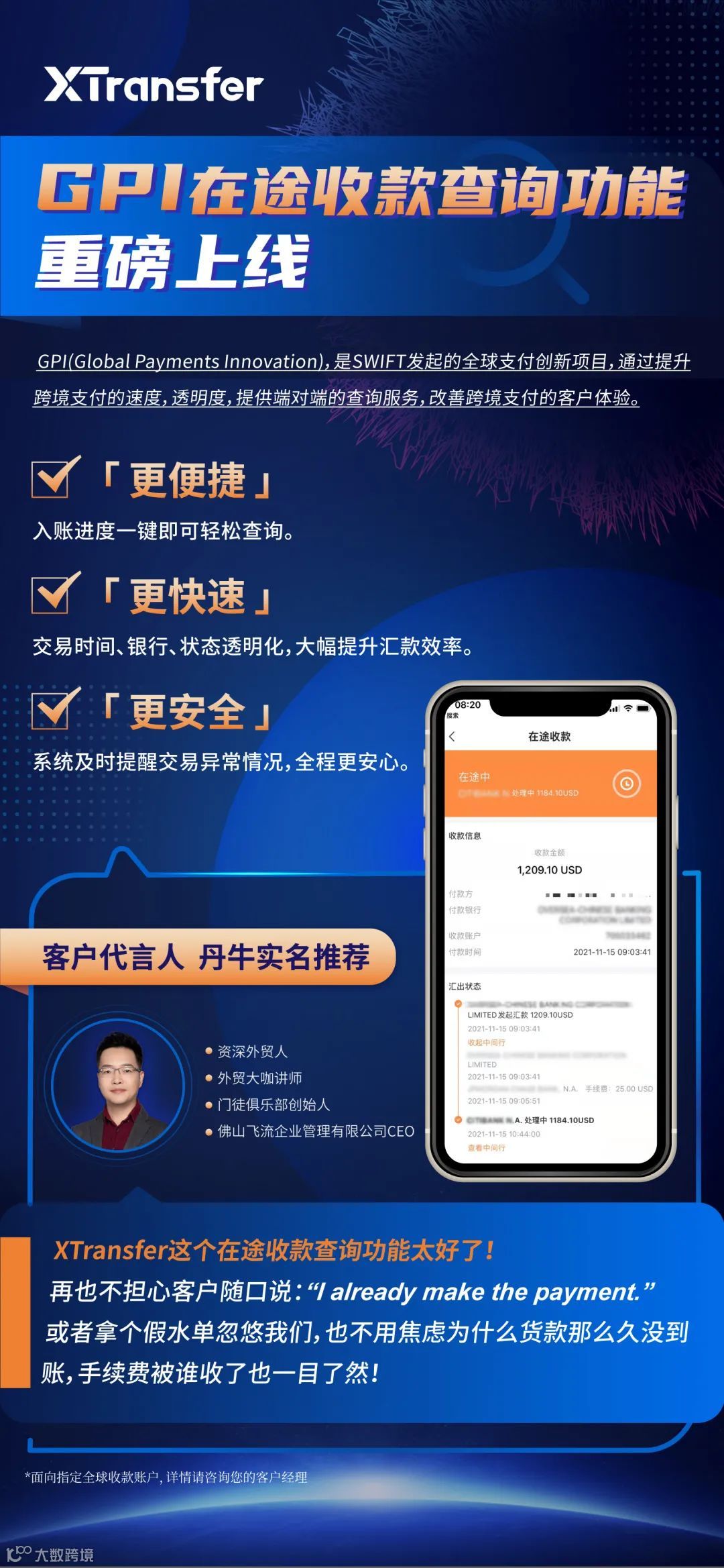 XTransfer特定全球收款账户第一时间打通GPI功能!
