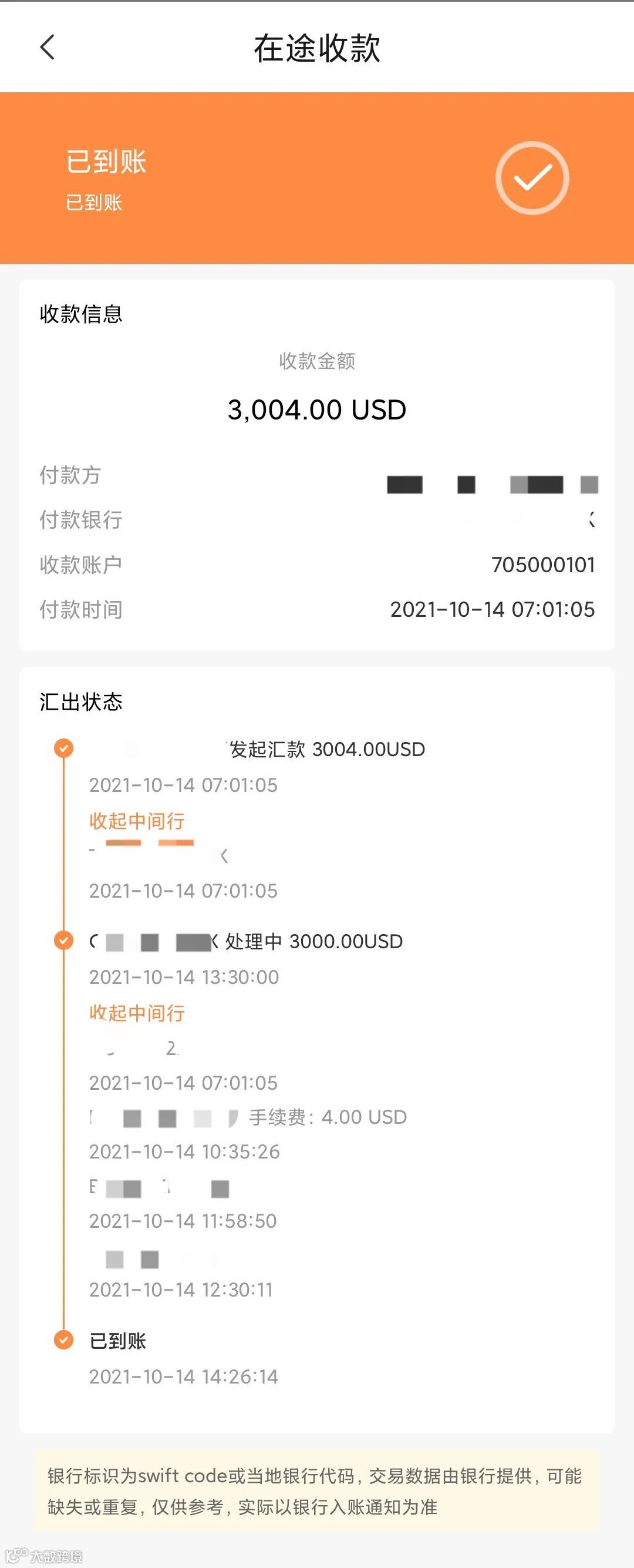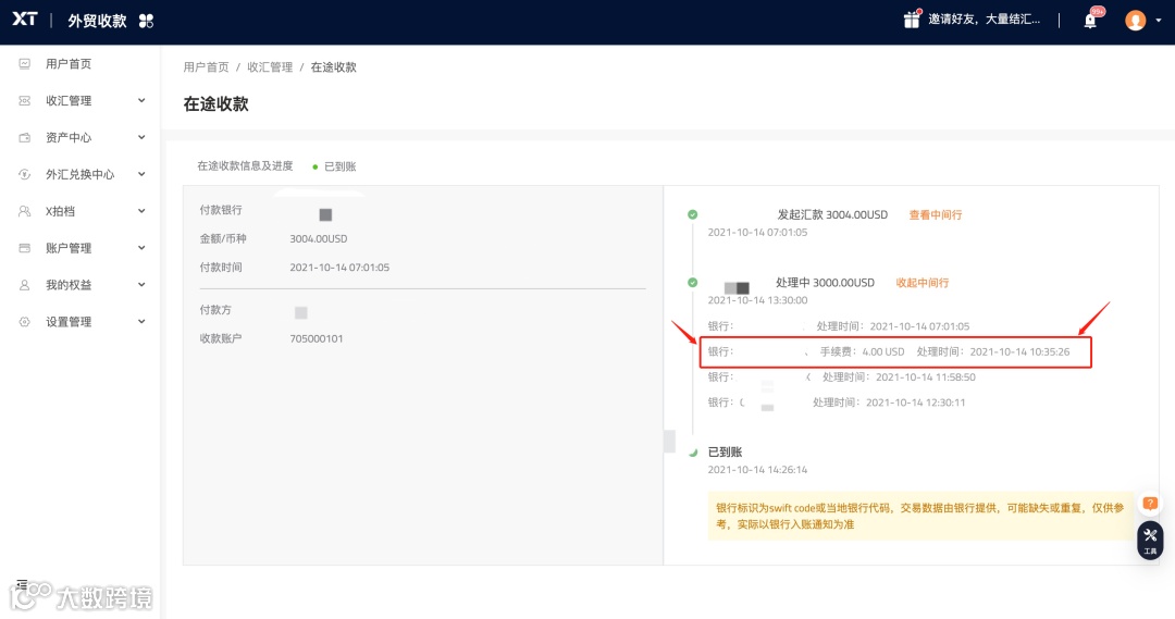 ★ 付款人发起付款的精准时间,何时进入哪家中间行、手续费多少,以及到账时间,全部清楚展示、尽在掌握!