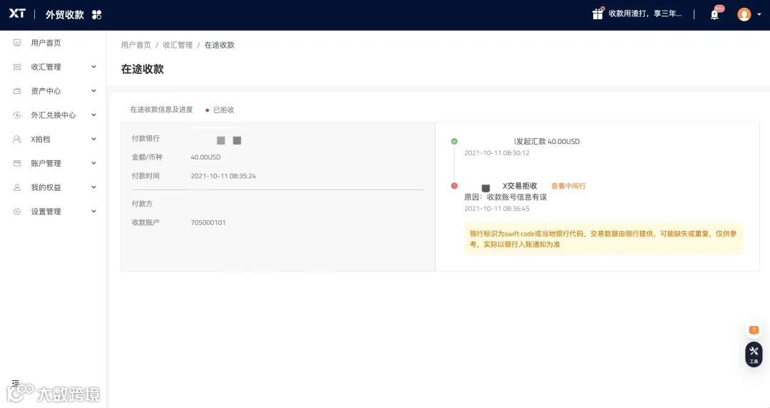 面向特定全球收款账户,付款人从发起付款到入账/拒收/退款全流程信息,皆可一键轻松查询,实时追踪汇款链路信息!