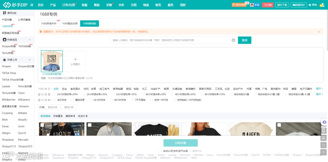 其中,全托管/半托管模块中支持:快速采集、跳转货源链接、1688搜同款;官方推荐模块支持1688搜同款,点击直接跳转相应界面,轻松实现高效上货。
