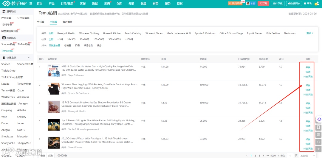 那么,如何在TEMU海量商品池中迅速找到爆款,快人一步呢?为此,妙手重磅上线TEMU热销功能,支持卖家快速查看半托管、全托管、官方推荐的热销产品,并可一键上货到店铺,实现高效选品、轻松上货。