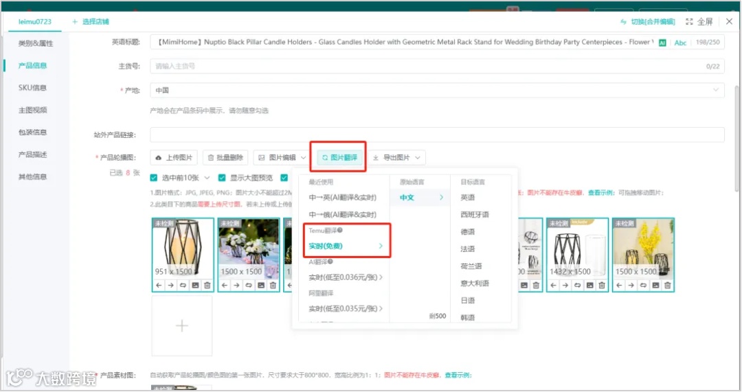 (图源妙手ERP图片翻译、AI图片编辑功能)