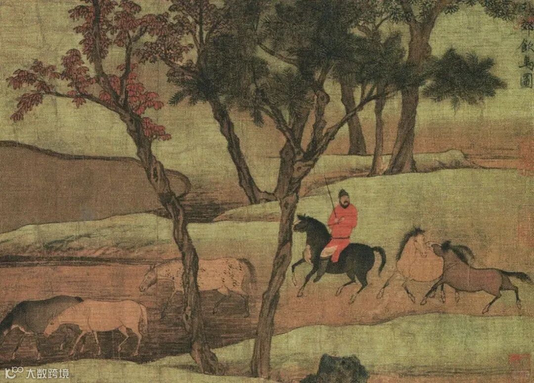 《秋郊饮马图》局部