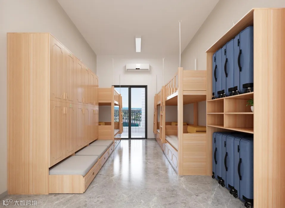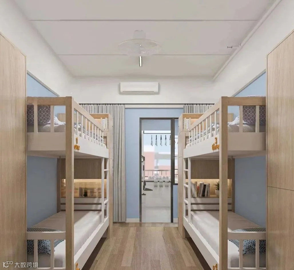 布局:女生4-6人/间,男生8人/间,上下铺