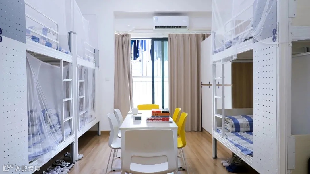 配置:宿舍有冷暖空调、独立卫浴、独立衣柜、超大阳台(可满足8名学生同时洗漱)。每层楼配有洗衣房,每间宿舍专属洗衣机(洗衣机免费使用)。