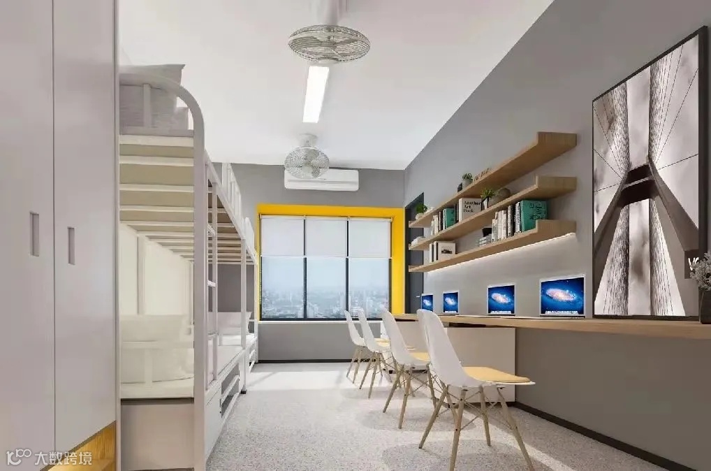 配置:宿舍配有衣柜、书桌、独立卫浴及空调等设备。每人一个柜子和桌子,每层楼有冰箱和洗衣房,有电梯。