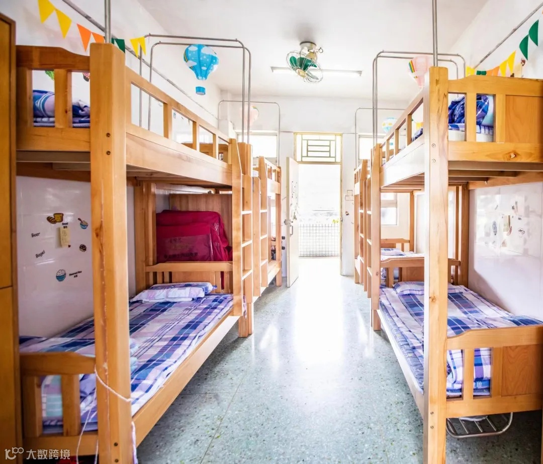 配置:全寄宿,设有双卫生间、独立和公共冲凉房(供应热水)、开水房、洗衣房,每间学生宿舍都配备空调、衣柜、鞋柜、高低床、学生生活便利。