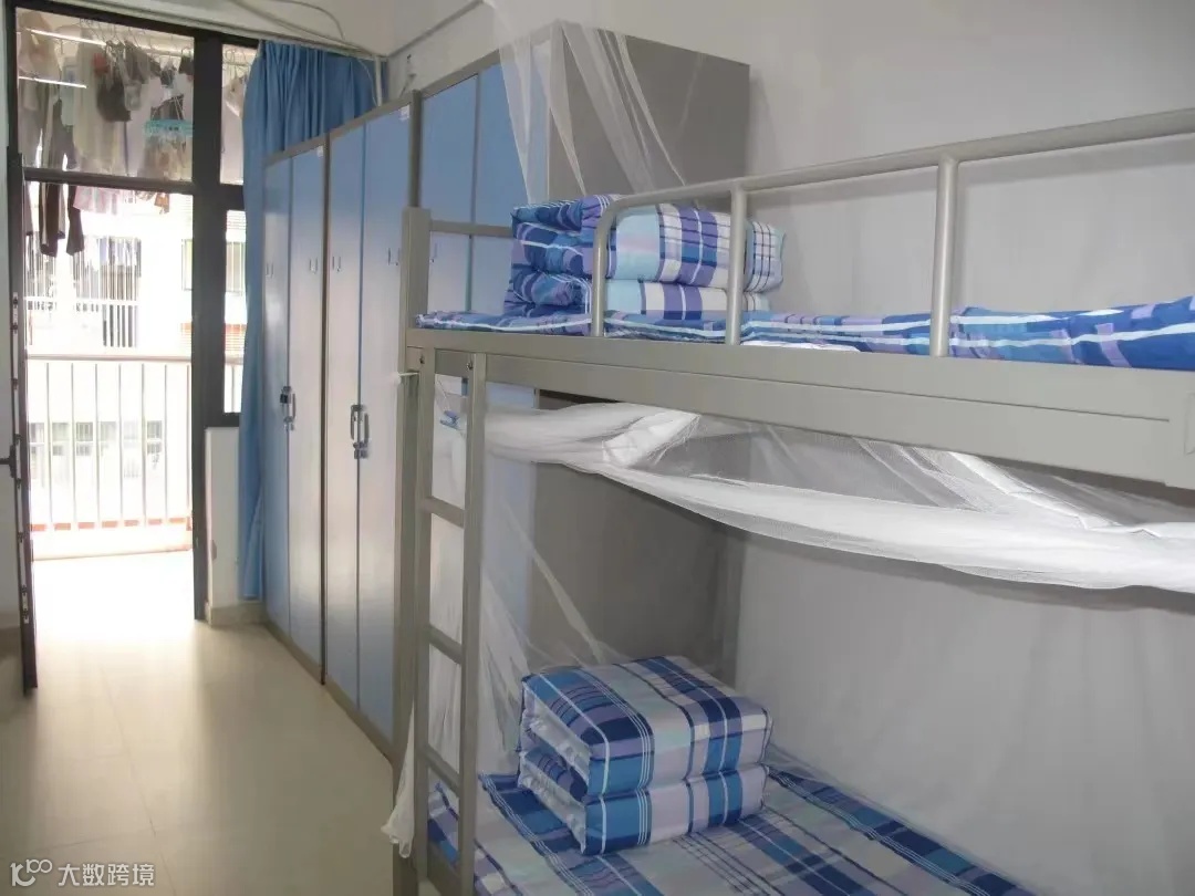 配置:宿舍按照男女生分栋住宿,分别配有4人间宿舍、6人间宿舍,多功能衣柜、空调鞋柜等基础设备齐全。宿舍有洗漱台、冲凉房和独立卫生间,提高了学生的宿舍条件。