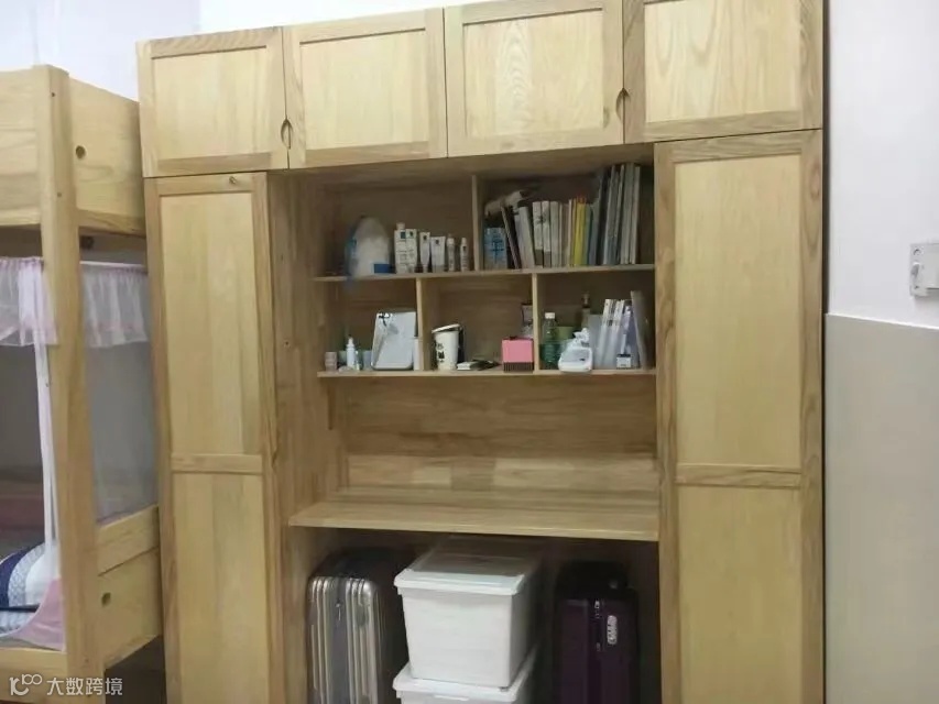配置:有独卫和公共澡堂,宿舍里洗澡和澡堂均可,洗手台有热水,有个很大的柜子及行李架非常方便实用。
