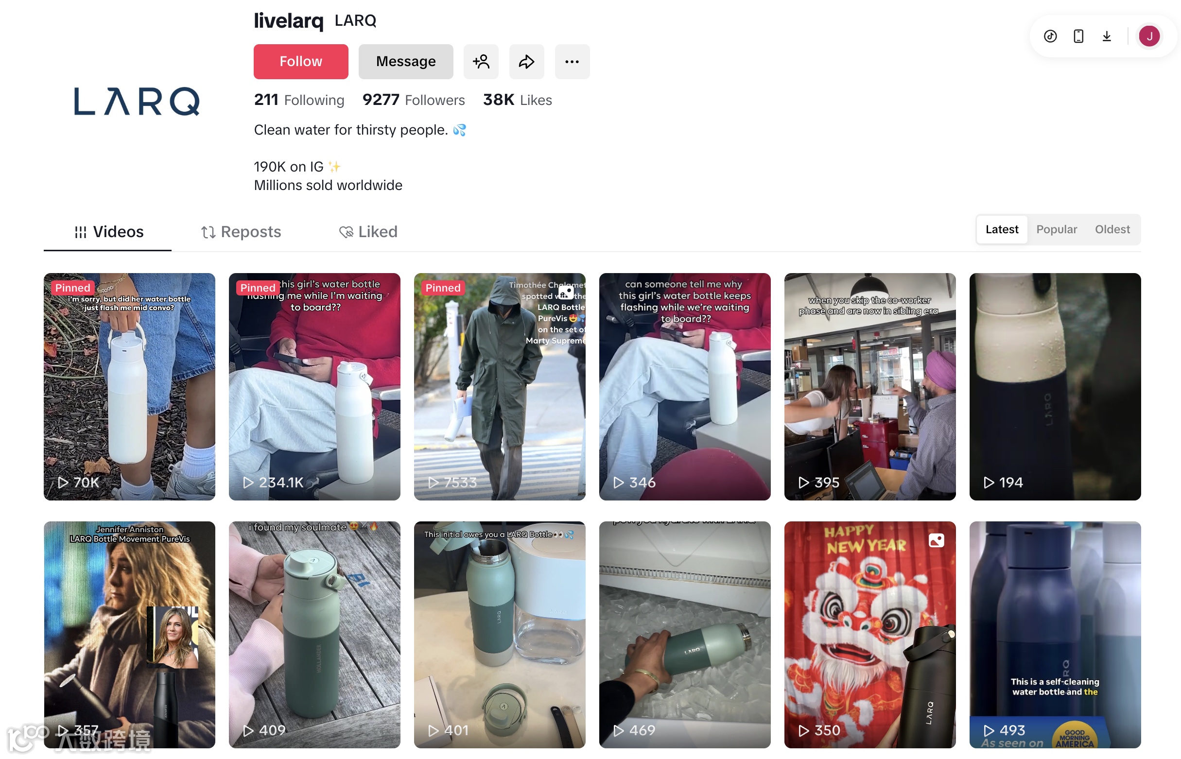 为此,LARQ在 TikTok、Instagram、YouTube等平台展开精细化社媒运营,依靠UGC内容驱动持续增长。