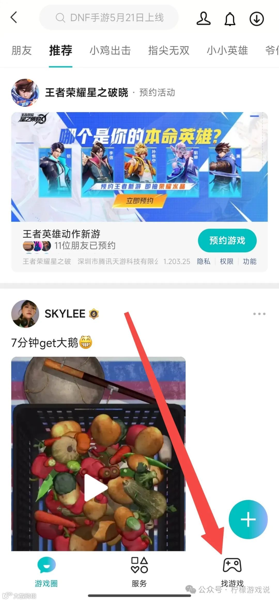 STEP 2:进入游戏页面后,点击右下角"找游戏"