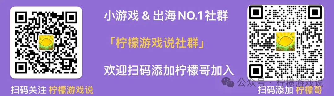 2024年1月10日柠檬哥创立了「柠檬游戏交流群」(免费加入),希望将这些优质人群通过以社群的形式聚集起来,和大家成为一辈子的朋友,一起探索世界、共同成长,目前人数已经超过3000,已经有6个柠檬交流群+2个柠檬出海群+1个新游挖掘群+1个0.1折交流群。