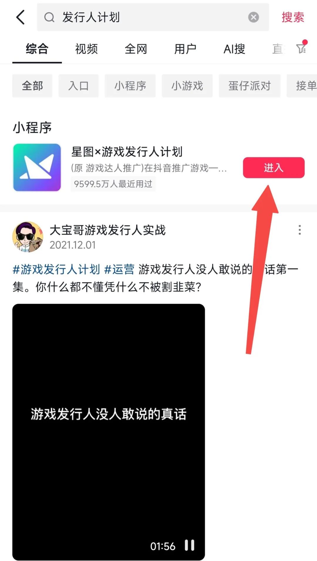 STEP 4:找到"星图x游戏发行人计划"小程序入口,点击"进入"