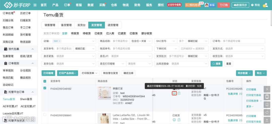 - TEMU全托管备货模式支持按发货单打印拣货单