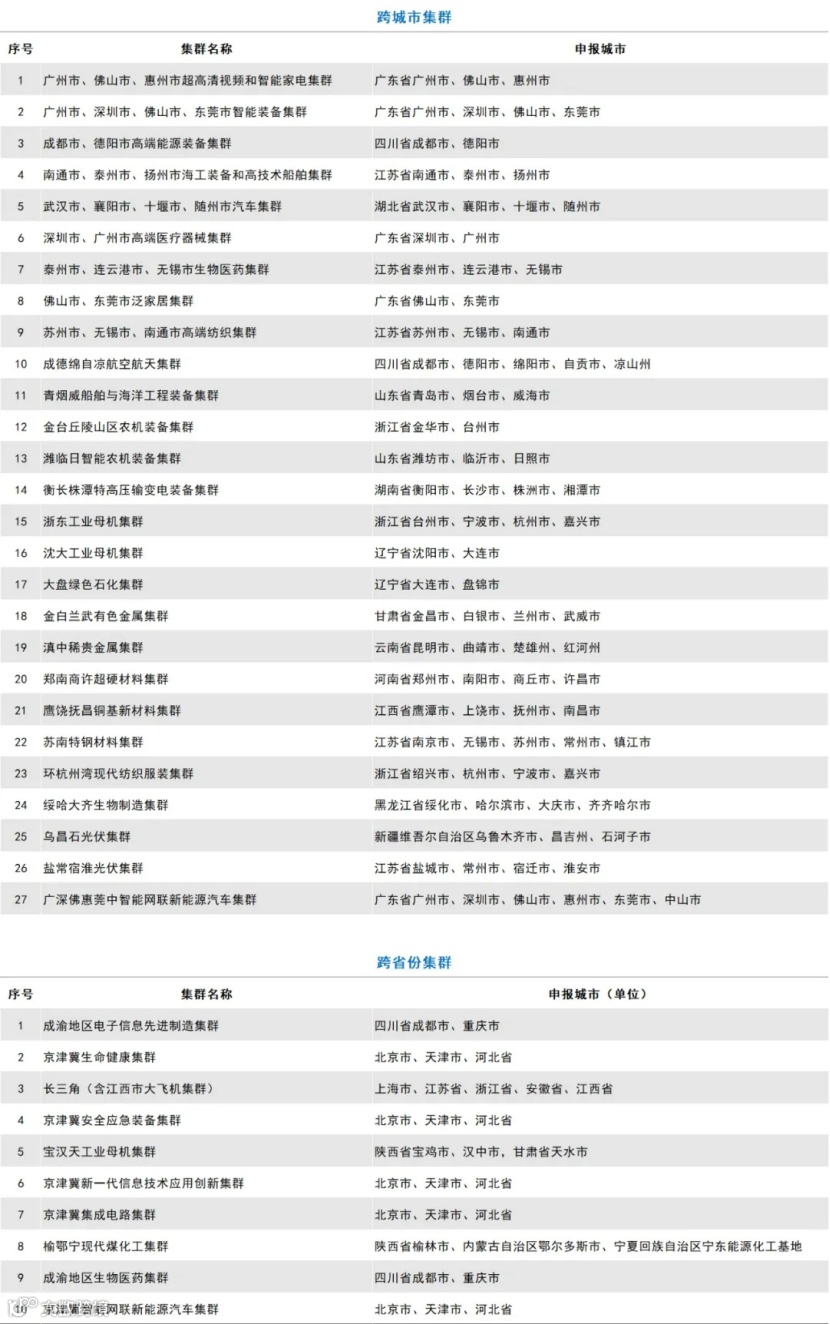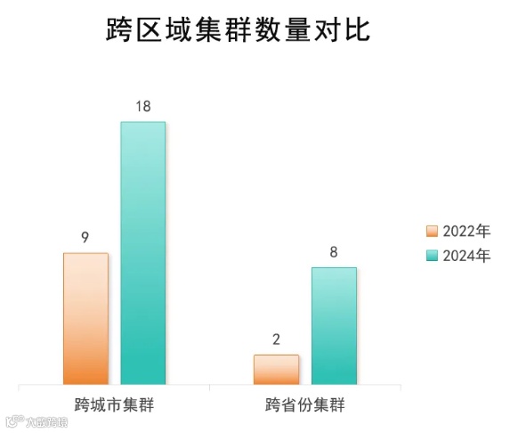 2022年公布的45个集群中,跨城市联合申报9个,跨省2个,跨区域占比约24%;2024年新增35个集群中,跨城市18个,跨省8个,跨区域占比高达74%。目前全国已有37个跨区域集群(含27个跨市、10个跨省),占总数的46%,协同发展趋势显著。