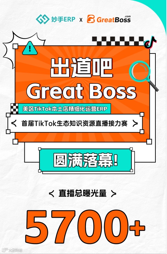 4月12日上午9:30,妙手旗下产品专为美国本土电商定制开发的精细化运营ERP——GreatBoss精心准备的“首届TikTok生态知识资源直播接力赛”在线上如期举行,并取得圆满成功。