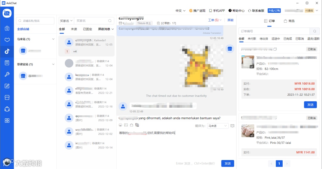 自动翻译:对接TikTok Shop的买家过程中,语言不通也无需担心,无需翻译软件,AskChat支持9大语种,一键开启消息自动翻译,交流畅通无阻。