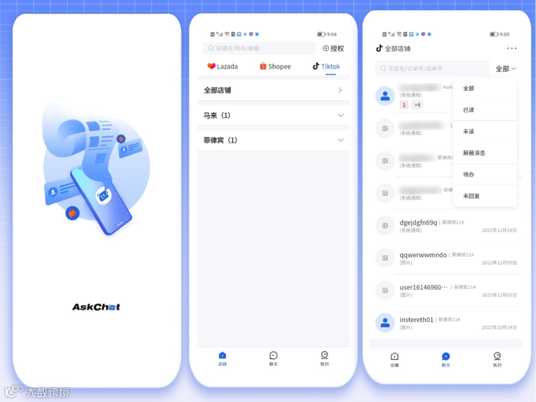 多站点店铺集成管理:支持授权TikTok Shop美国本土店/跨境/ACCU店、东南亚跨境/本土店、英国本土店在AskChat上可实现多店铺同时管理,无需切换平台及账号,一个系统上就能集中解决多平台多店铺客户接待。