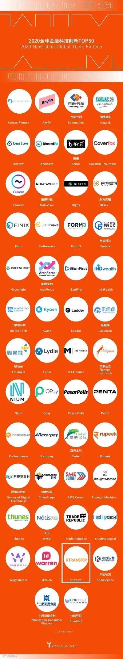 近日,以 " 科创连动世界 " 为主题的 World Innovators Meet (WIM)2020 世界创新者年会在京召开,来自亚洲、非洲、欧洲、美洲的全球创新者汇聚一堂,分享科技创新成果和认知,共同见证了 " 全球金融科技创新 TOP50 " 榜单的发布。凭借在跨境金融领域的领先地位和广阔的市场前景,一站式外贸企业跨境金融和风控服务公司 XTransfer 成功入选。