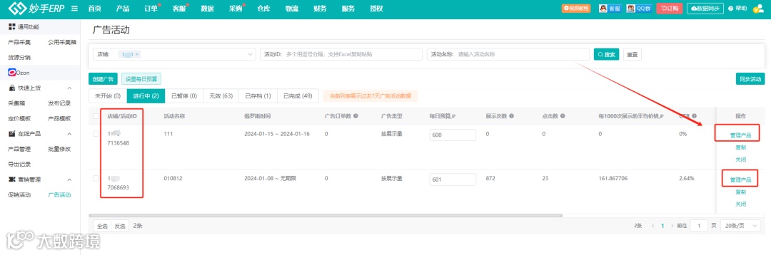 运营Ozon多店铺的卖家设置广告活动后,如果需要来回切换店铺去管理广告活动,操作会非常繁琐,需要耗费大量的时间、人工成本。